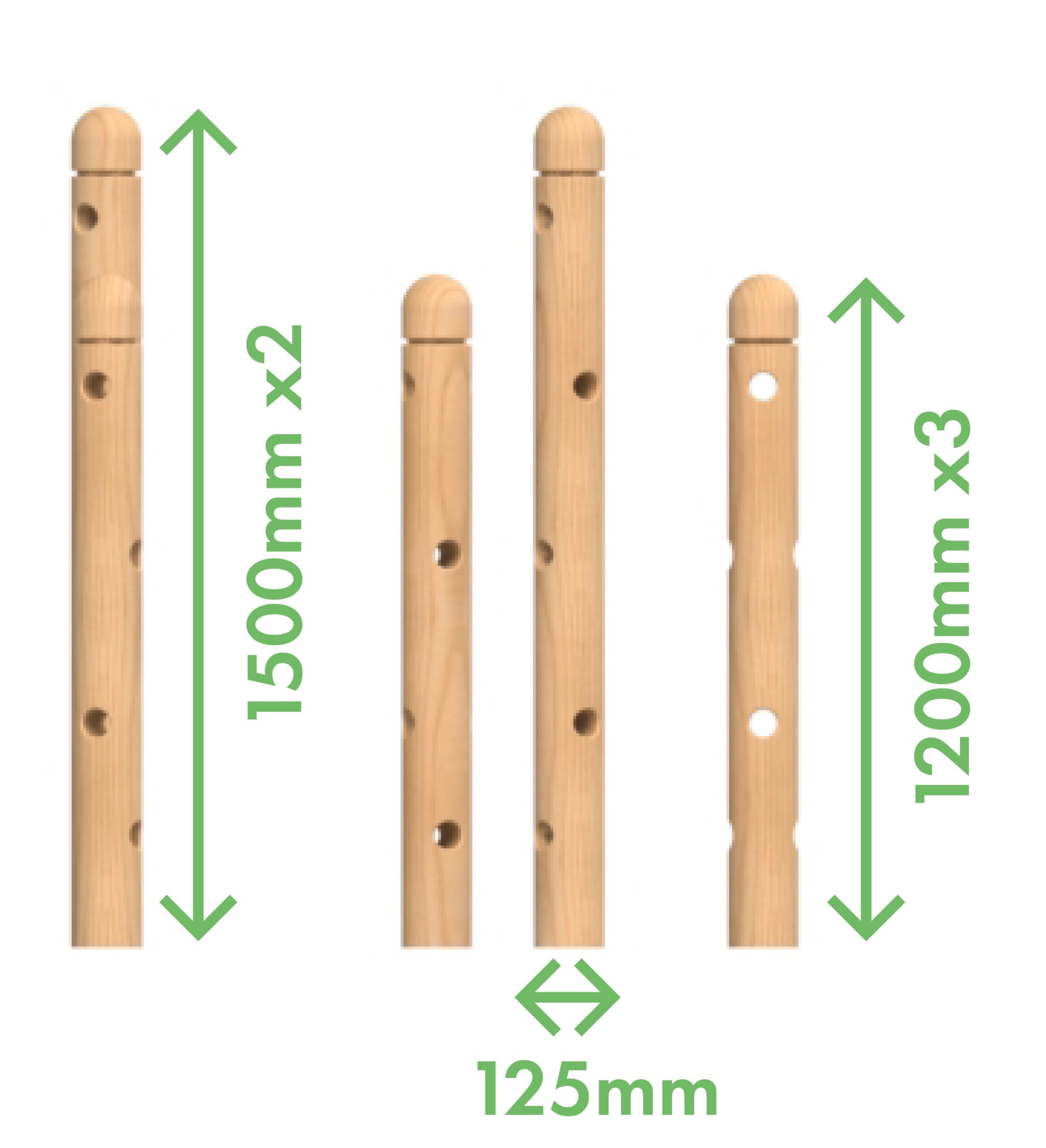 3 x 1200mm High timbers and 2 x 1500mm High timbers